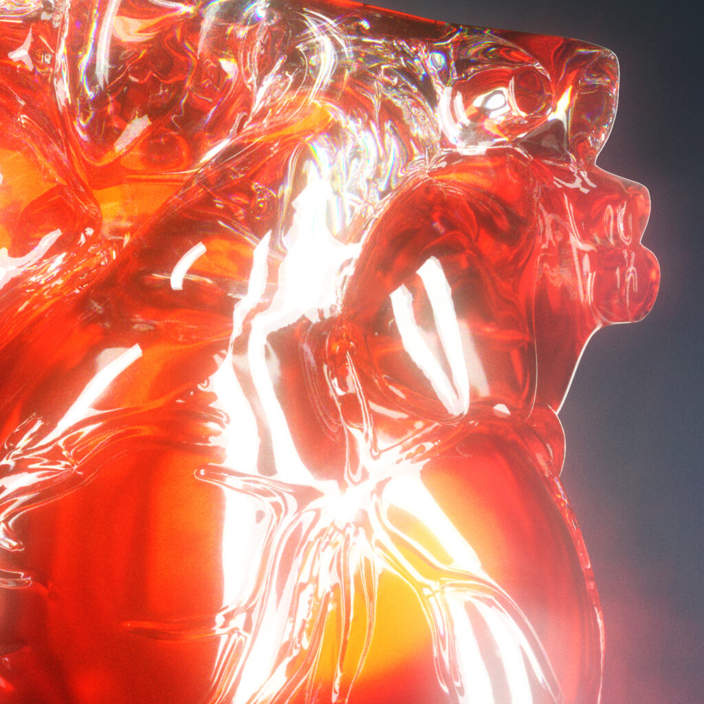 ZBrush is where the difference is made: without that sculpting work, the glass would have been perfect — therefore cold, therefore fake. The veins carved into the wall catch light differently, create depth, remind you that behind the object there is an actual organ.