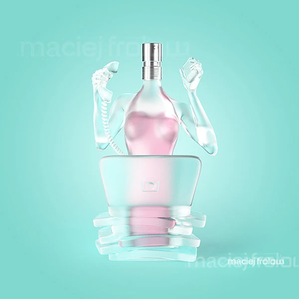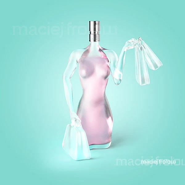 The brief was deceptively simple: create realistic perfume bottles shaped like a woman’s body, each pose reflecting a different moment of daily life — shopping, gym, office.